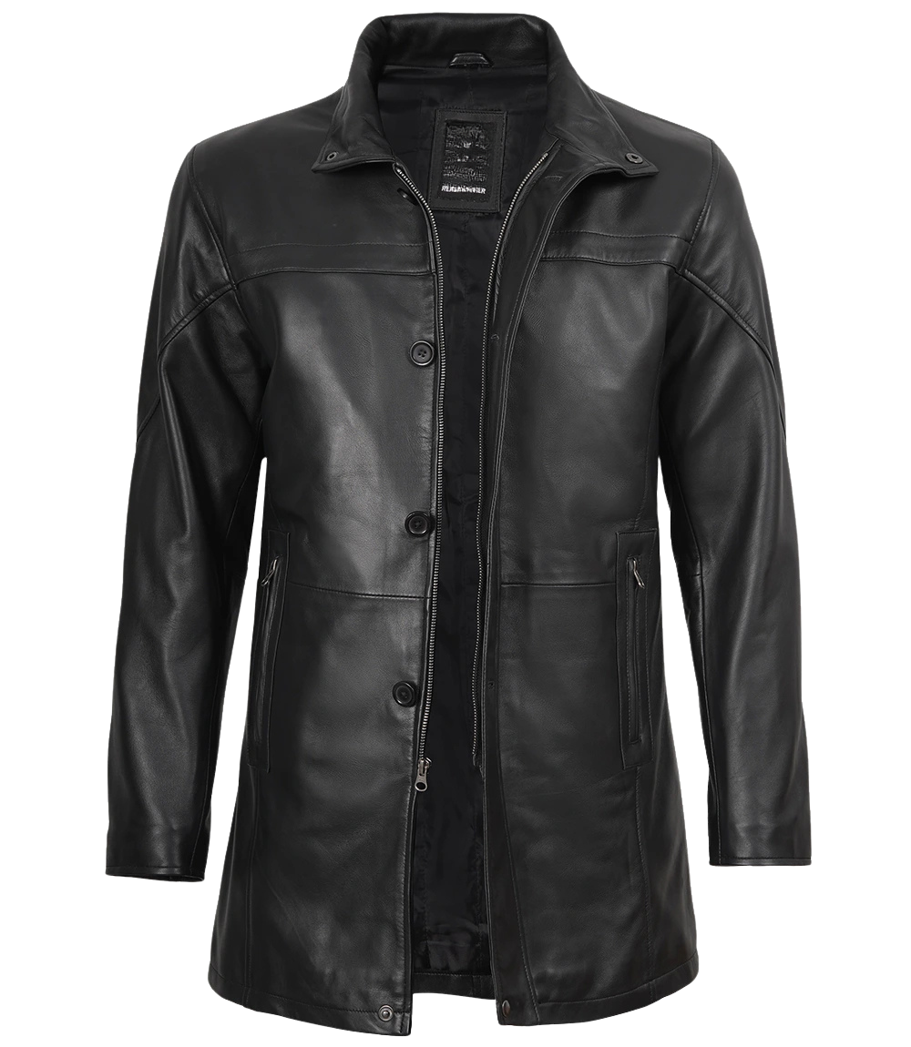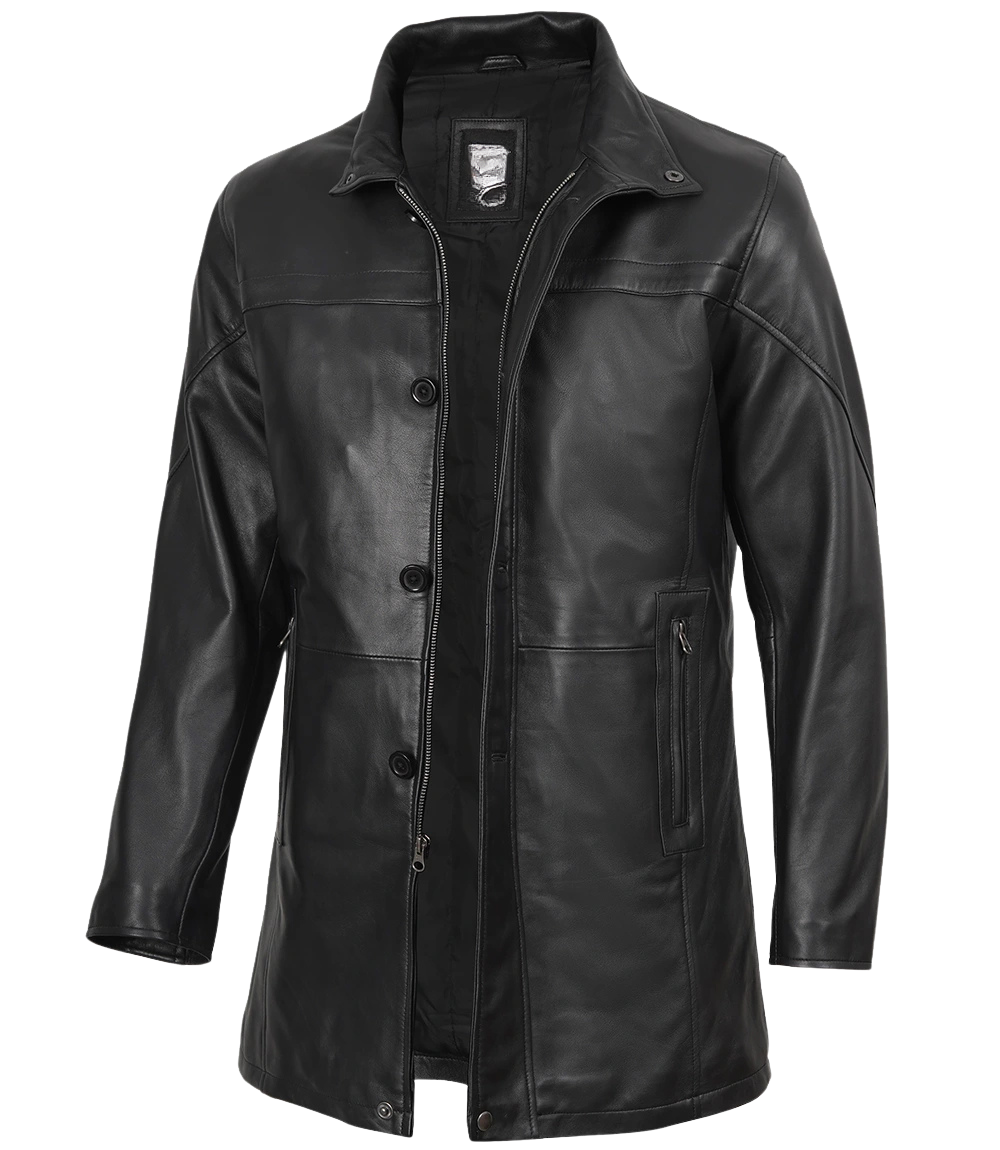 Our Men’s Black Leather Car Coat is the ultimate blend of style and sophistication. Designed in a 3/4 length cut, it offers a sharp, tailored look that works for every occasion. Crafted from premium leather, it’s the perfect piece to elevate both casual and formal outfits.