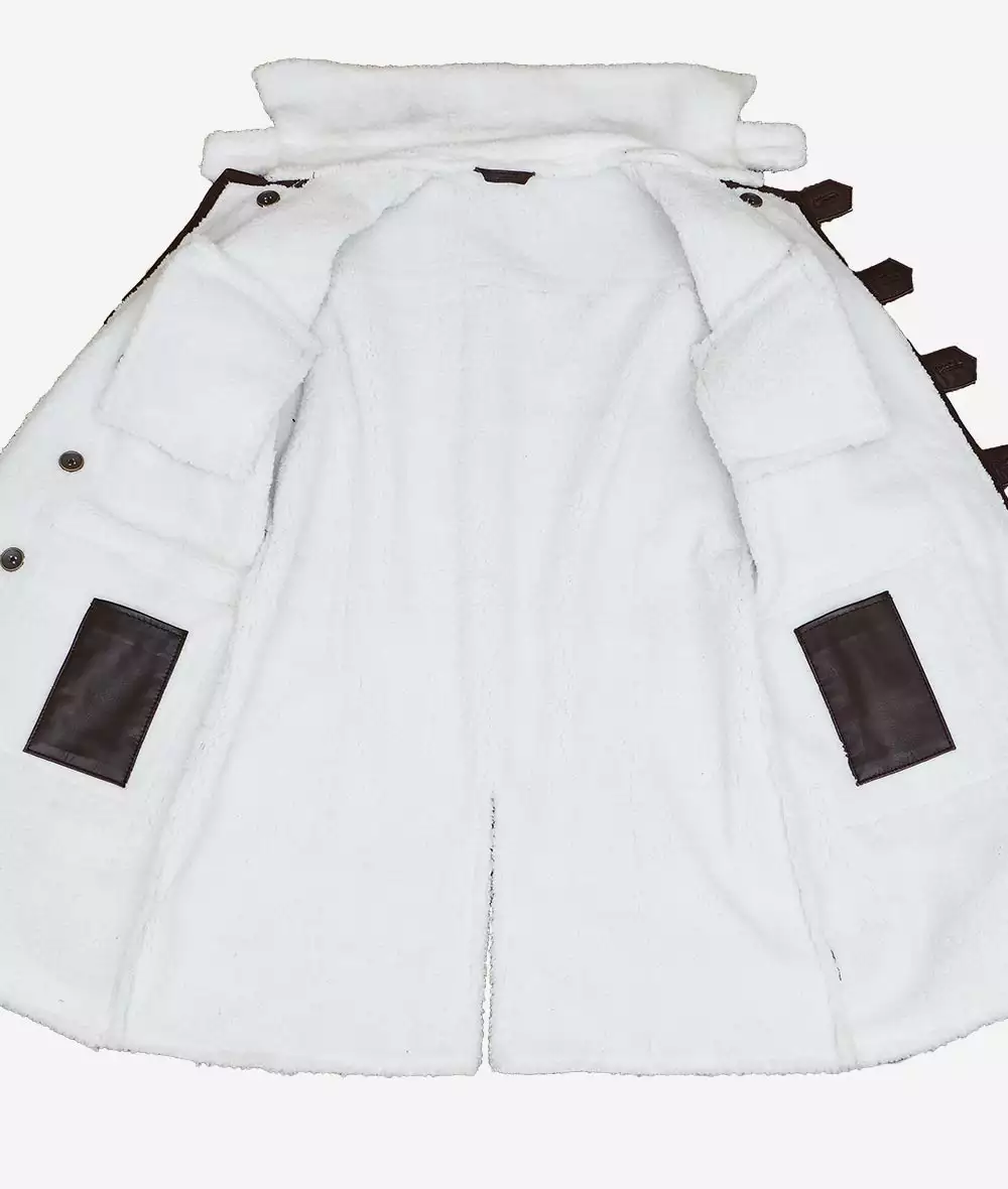 Embrace cold-weather sophistication with this premium real leather coat, designed with a plush sherpa lining for exceptional warmth and comfort. Its rich brown hue balances rugged strength with refined style, making it a timeless addition to any winter wardrobe.