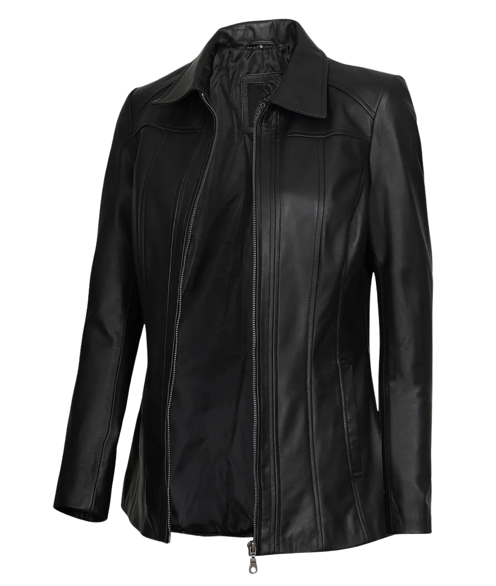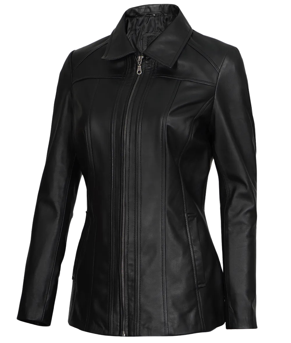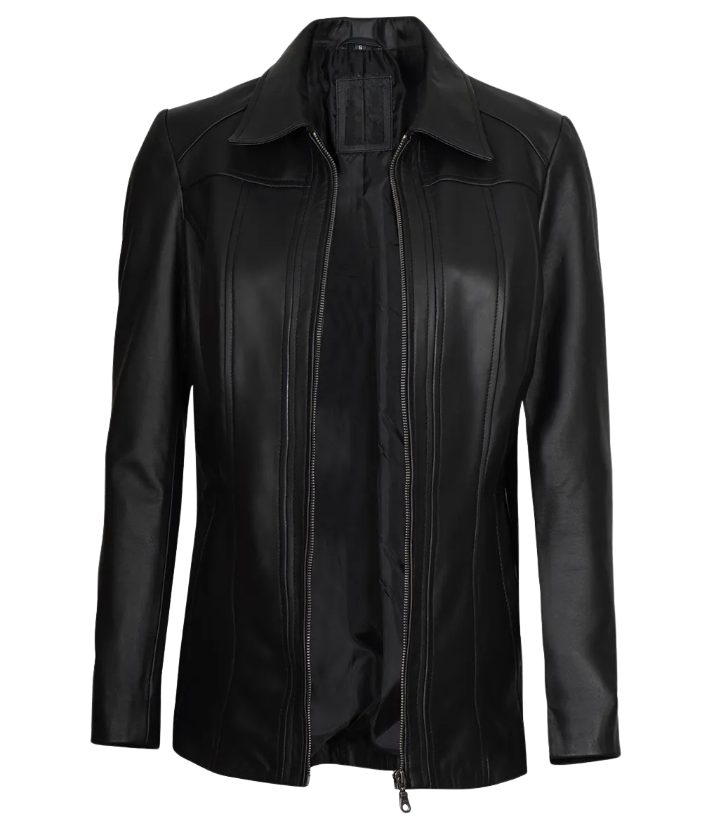 This womens black leather coat is a stylish and versatile addition to any wardrobe. It features a mid length style, made of high-quality leather for a soft and comfortable feel. It has a classic, timeless look with a simple, elegant design. Perfect for a range of occasions, whether dressed up or down.