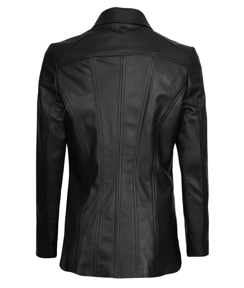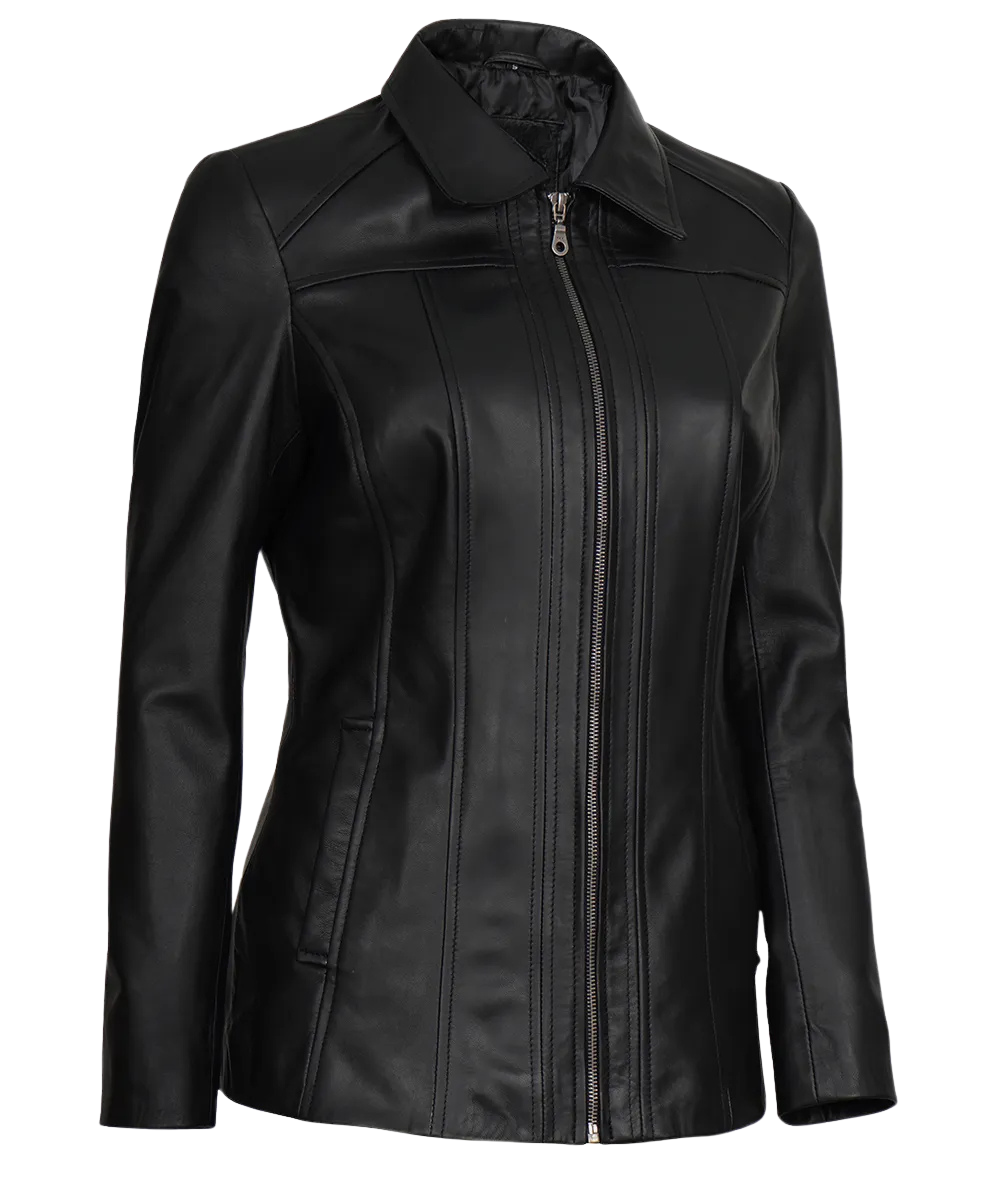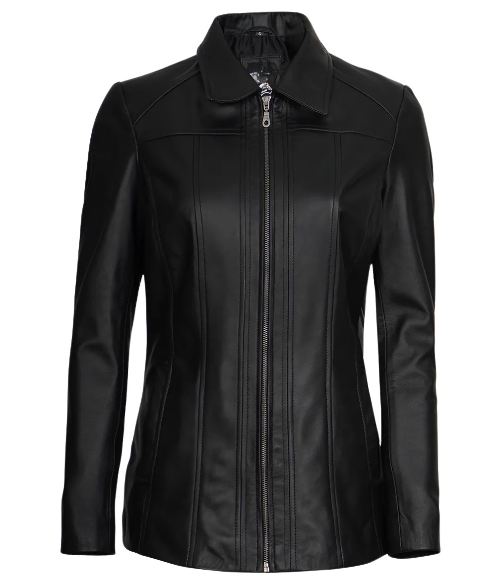 This womens black leather coat is a stylish and versatile addition to any wardrobe. It features a mid length style, made of high-quality leather for a soft and comfortable feel. It has a classic, timeless look with a simple, elegant design. Perfect for a range of occasions, whether dressed up or down.