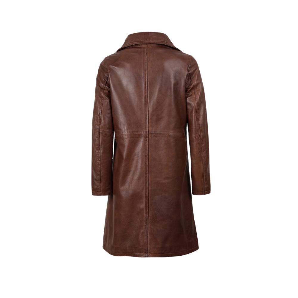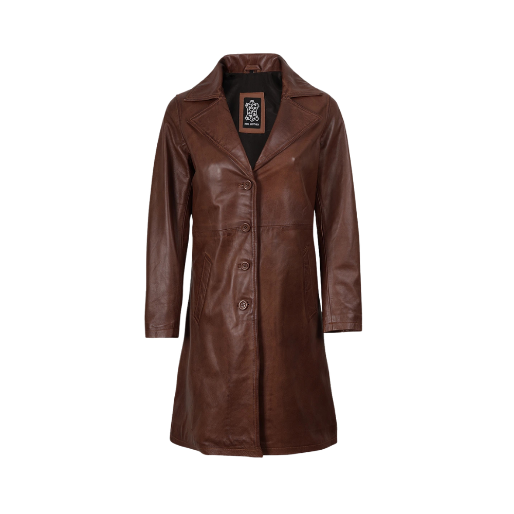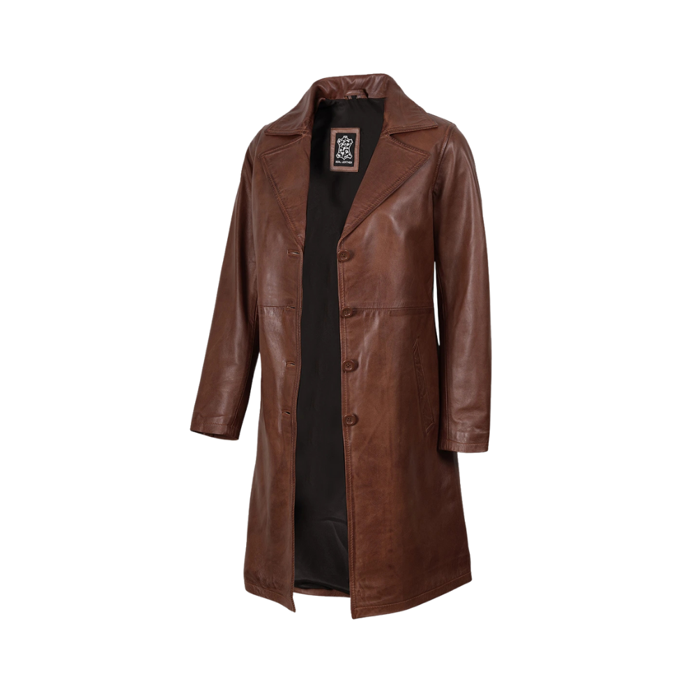 Upgrade your outerwear wardrobe with our Women’s Long Cognac Leather Coat. Made from high-quality leather in a deep cognac shade, this coat delivers classic sophistication with modern appeal. The long silhouette provides superior warmth while enhancing your overall look with effortless grace.
