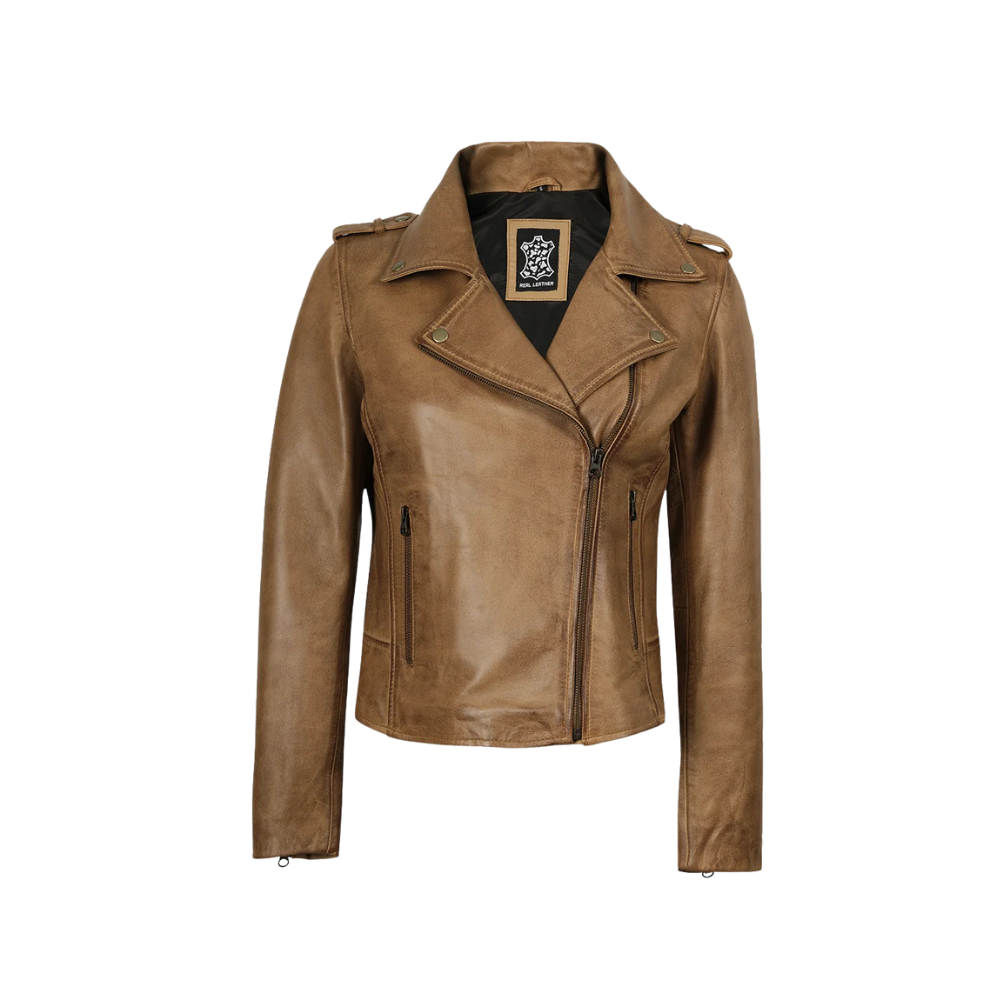 Discover refined style with this women’s asymmetrical camel brown real leather jacket. Expertly crafted from premium leather, it showcases a rich camel brown tone and a distinctive asymmetrical design that adds a modern, fashion-forward edge. Perfect for both casual days and evening outings.