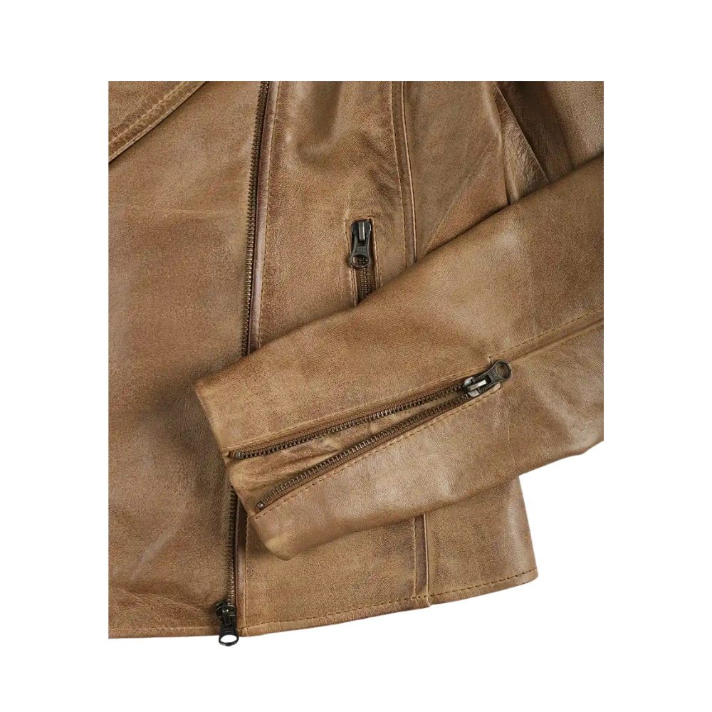 Be the first to review “Kirsten Women’s Asymmetrical Camel Real Leather Jacket” Cancel reply