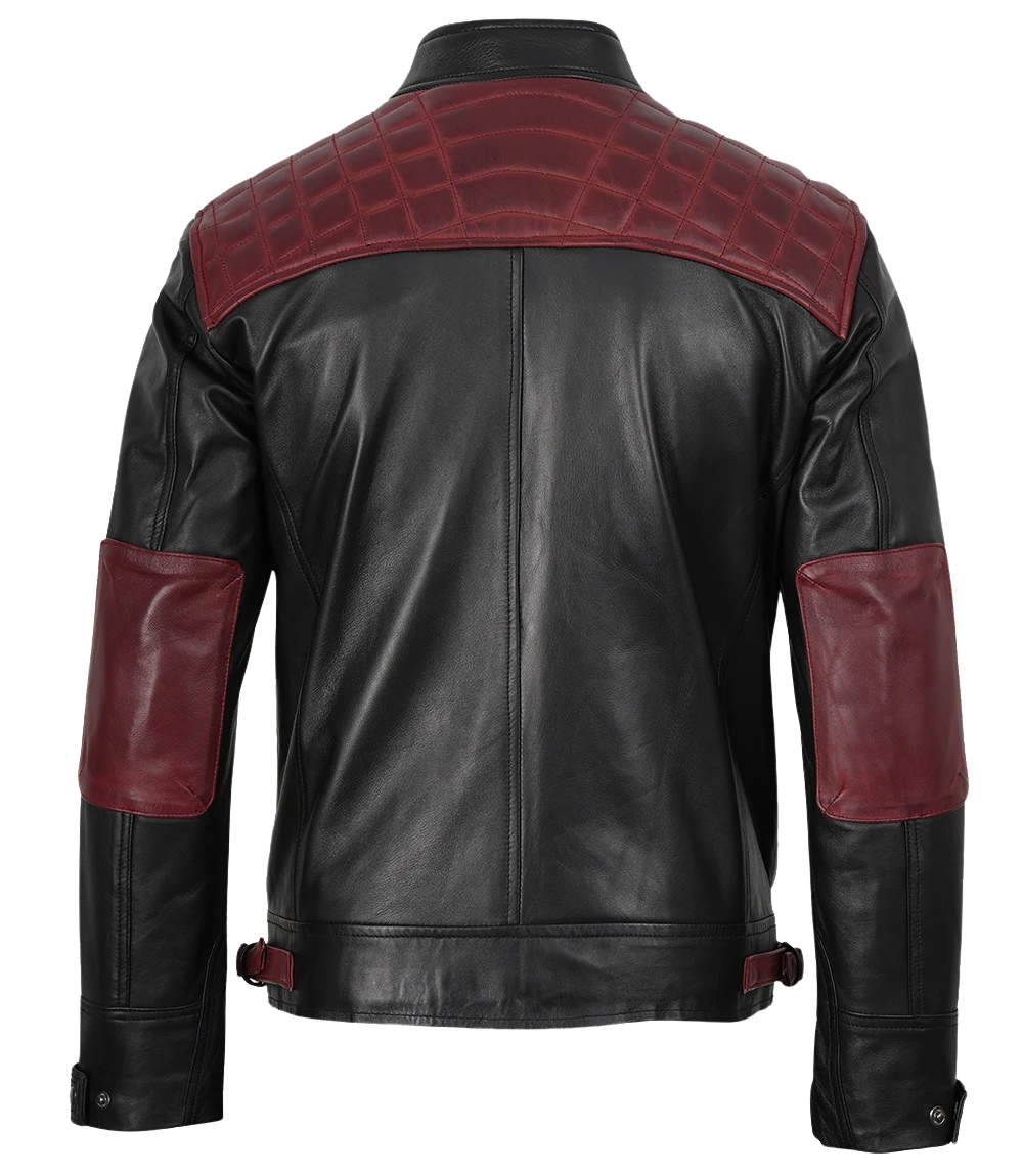 Be the first to review “Men’s Black & Maroon Quilted Shoulder Biker Leather Jacket” Cancel reply