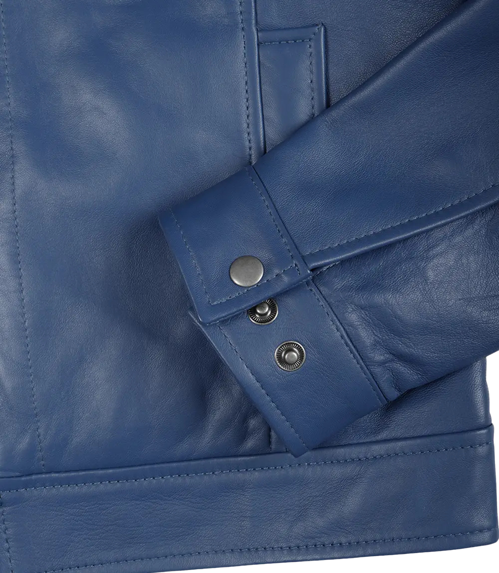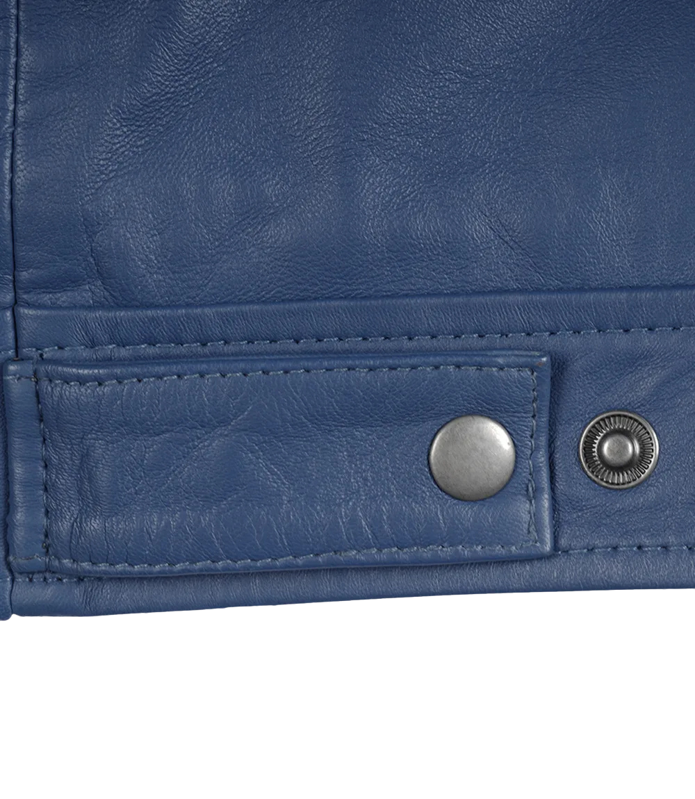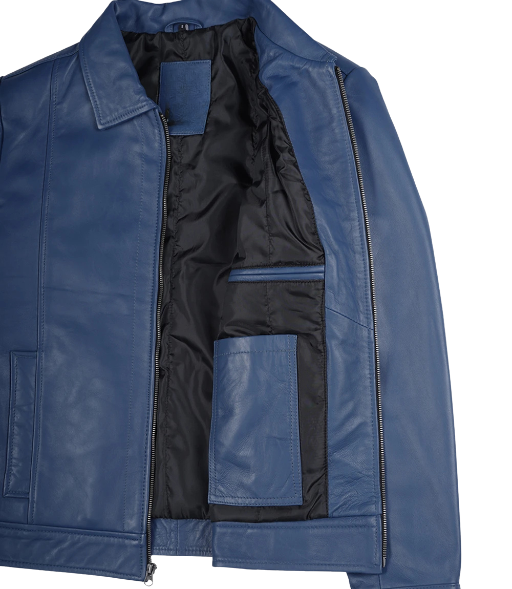 Find your perfect companion for daily commutes in this blue leather jacket. It’s constructed with real lambskin leather and is fully lined with soft polyester fabric.