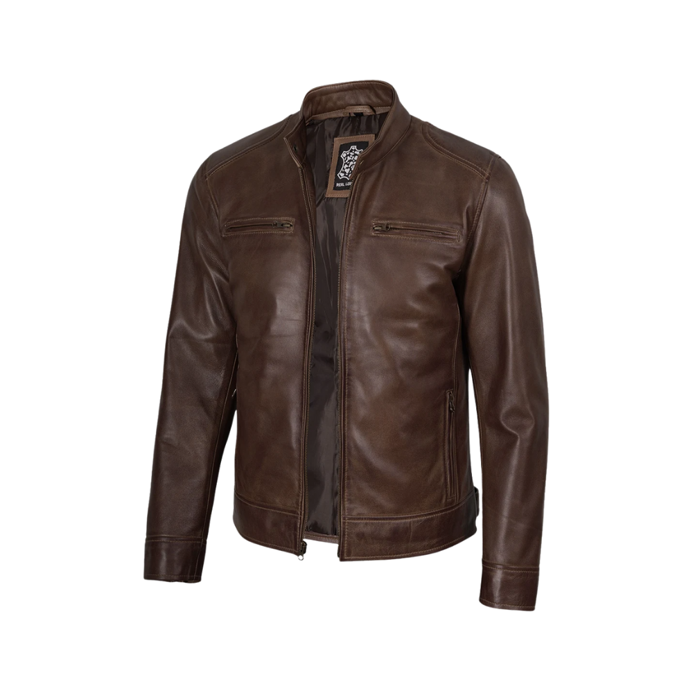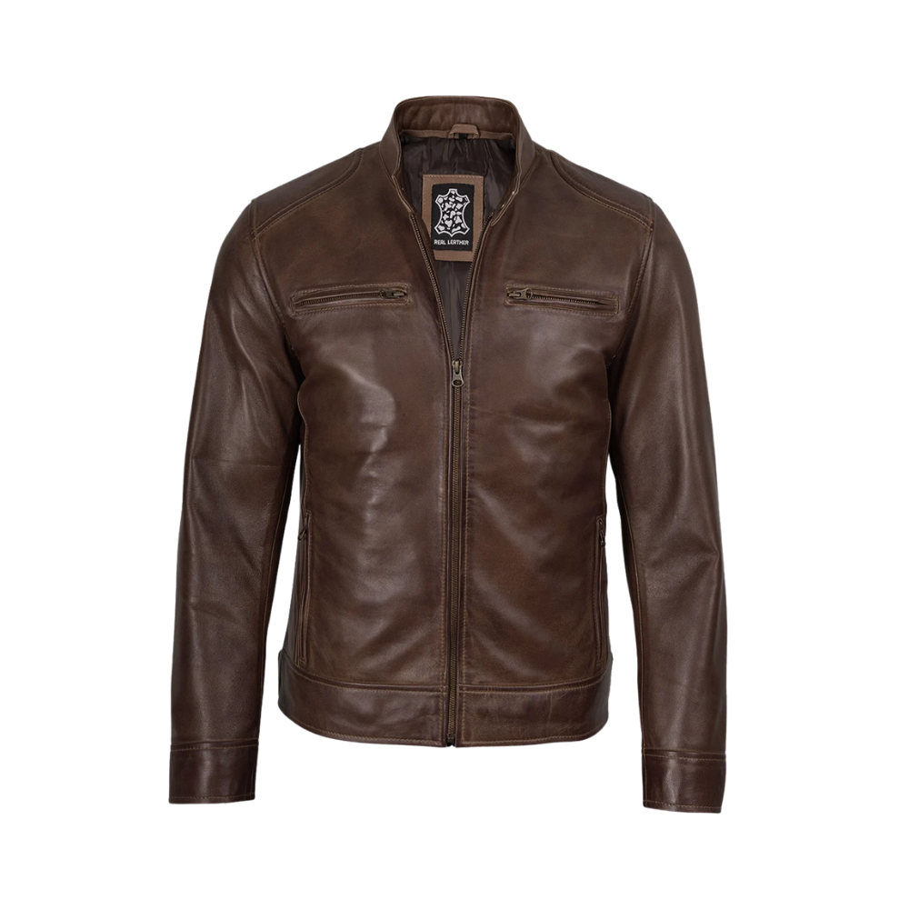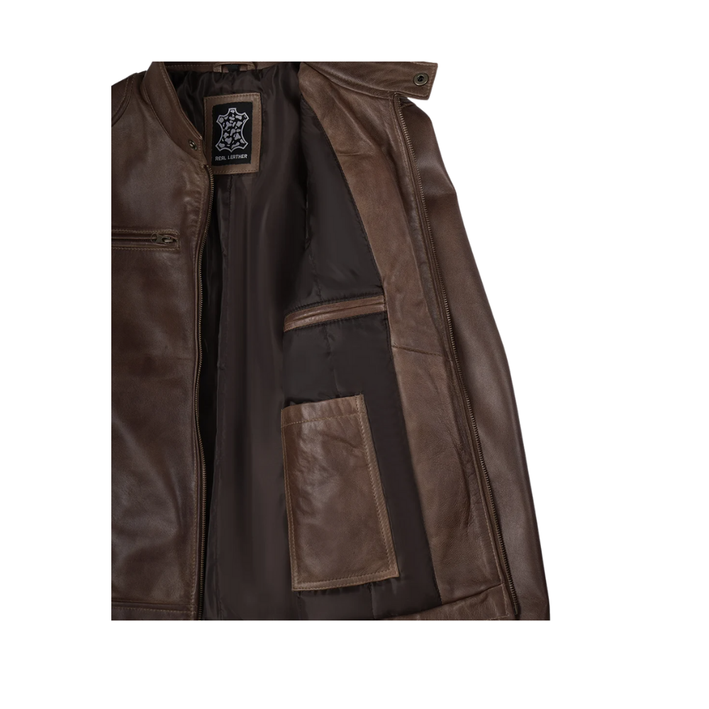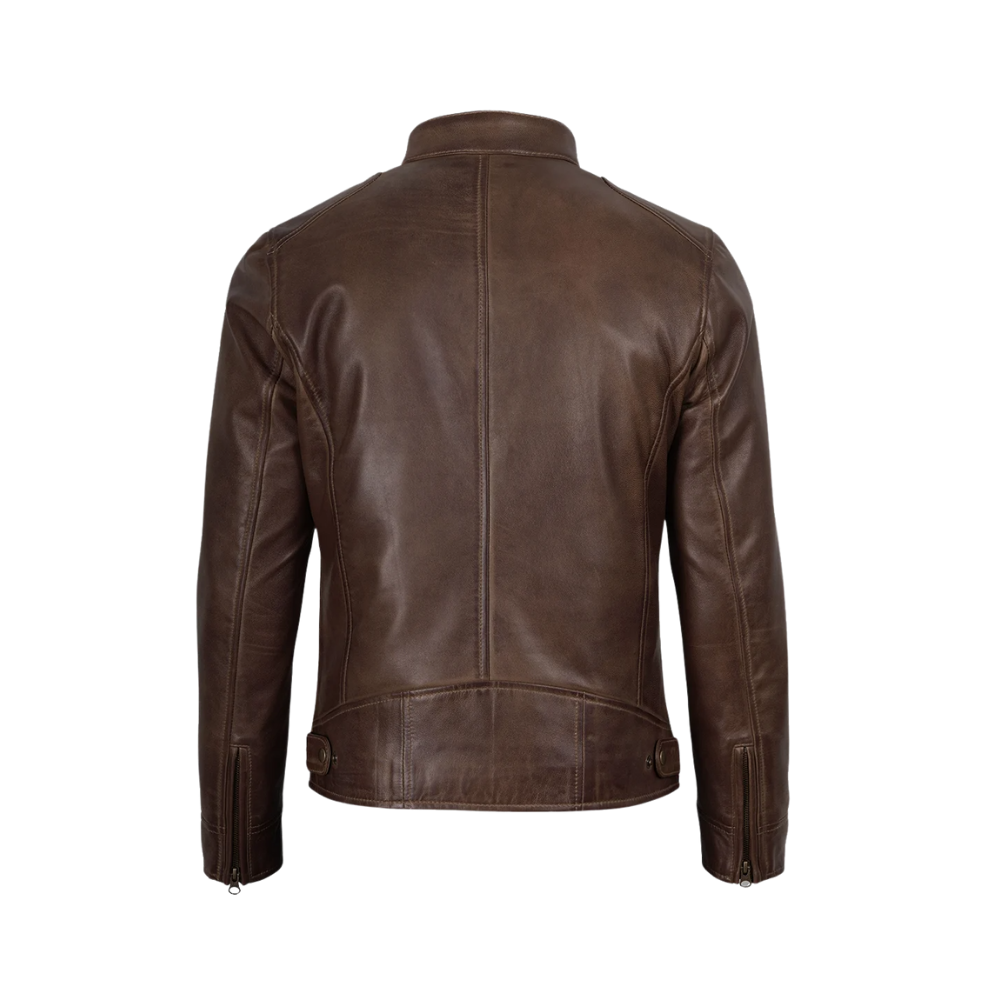 Men’s Coffee Brown Waxed Cafe Racer Real Leather Jacket