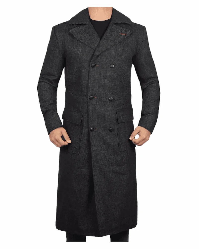 Men’s Double-Breasted Long Gray Wool Coat - Letover Jackets