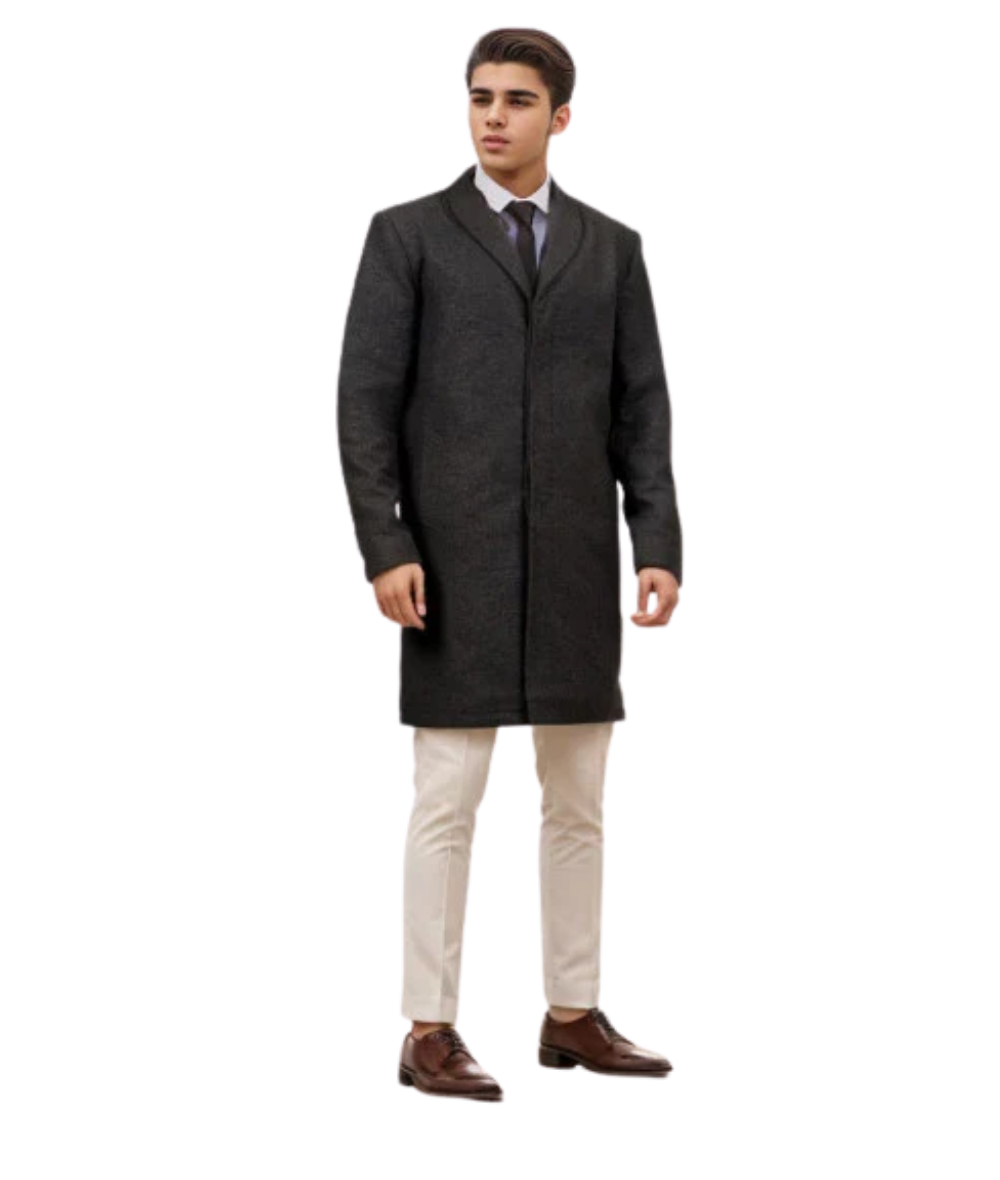 Introducing our Men’s Grey Wool Coat, where timeless design meets superior warmth. Crafted from a high-quality wool blend, this refined piece adds effortless sophistication to your winter look. Its classic grey tone and tailored fit make it a versatile essential for any occasion—keeping you warm, sharp, and confident all season long.