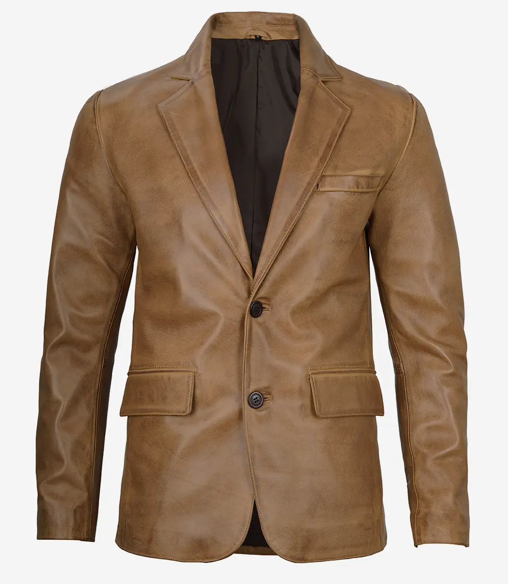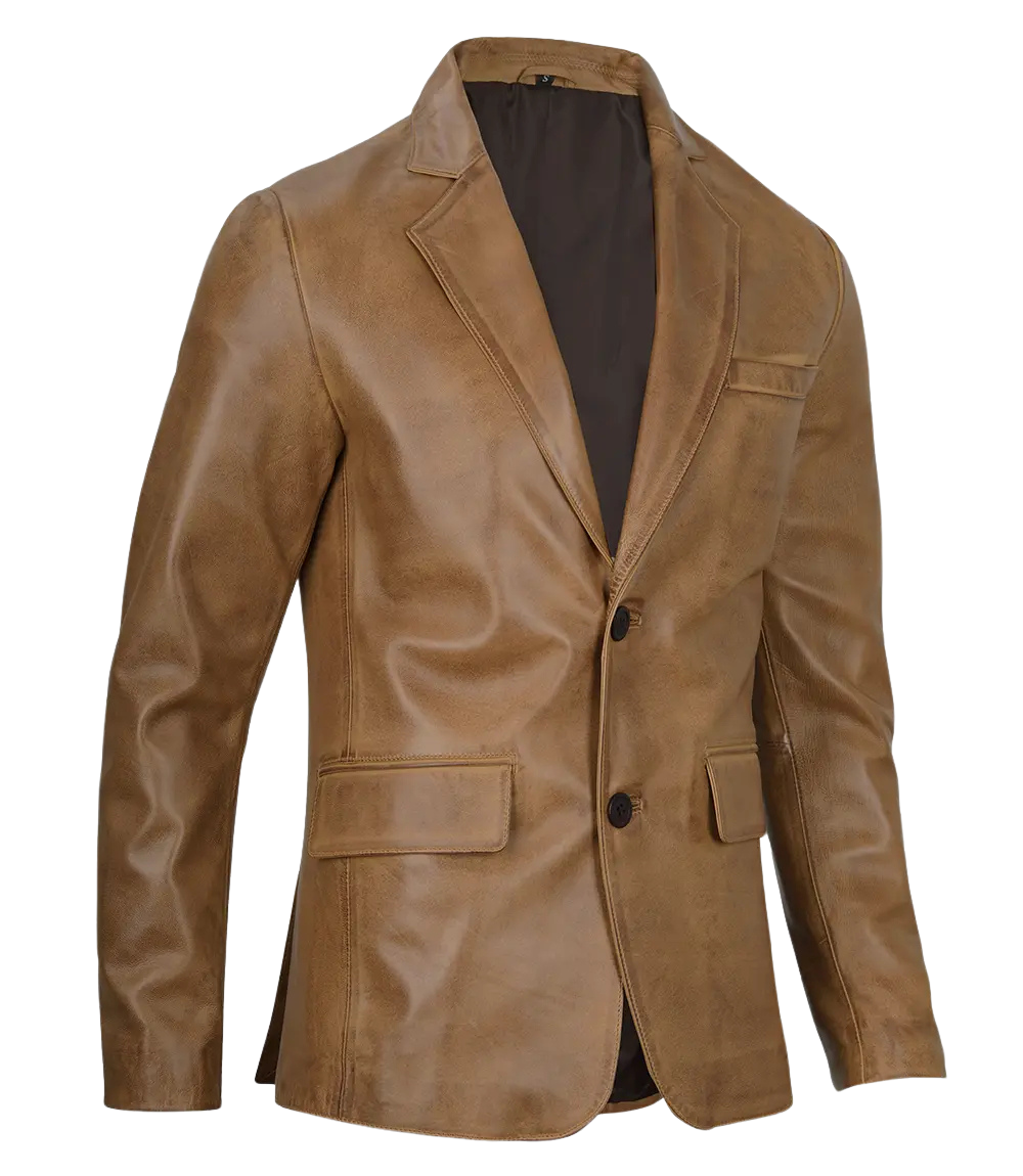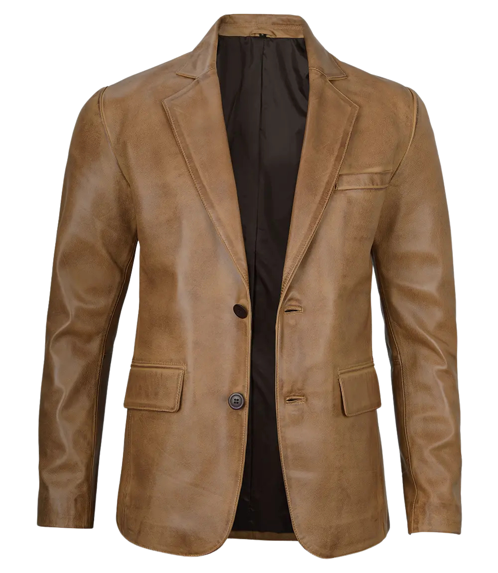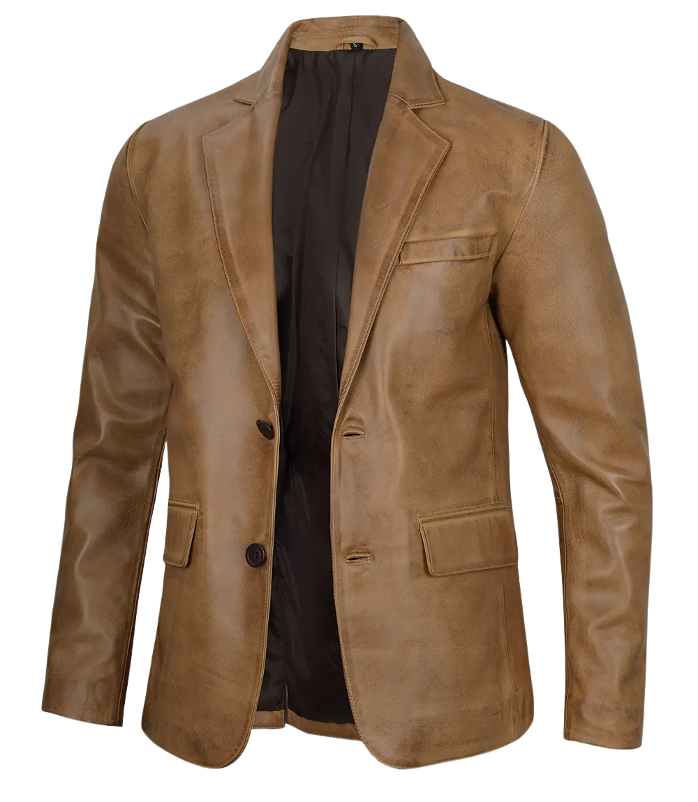 Be the first to review “Men’s Premium Camel Leather Two-Button Blazer” Cancel reply
