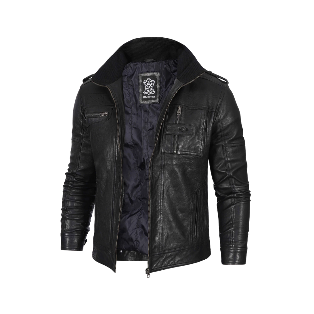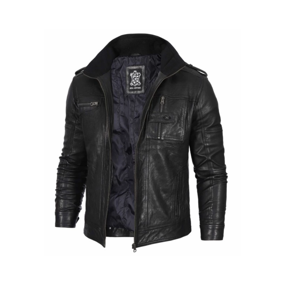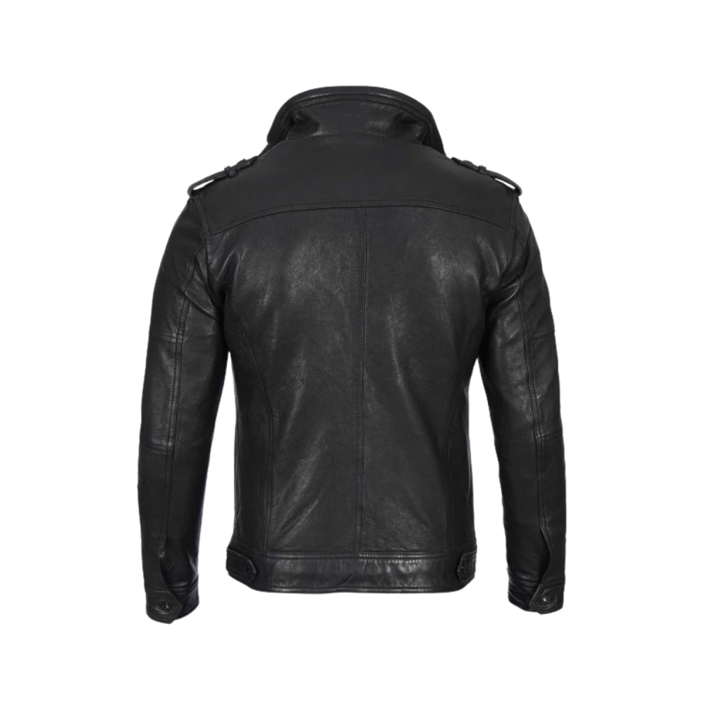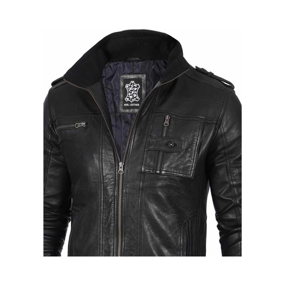 Want a look that speaks for itself? This black café racer leather jacket delivers effortless class with a bold edge. Featuring a waxed finish, zippered pockets, and shoulder epaulets, it’s designed to make a statement wherever you step out.