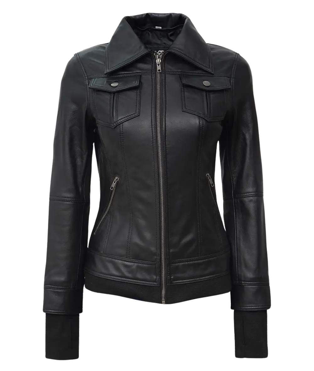 Effortlessly blend style and comfort with this women’s black leather bomber jacket. Made from real lambskin leather, it features a removable hood, soft lining, thumbholes, and multiple zip pockets, perfect for versatile, everyday wear from city strolls to weekend outings.