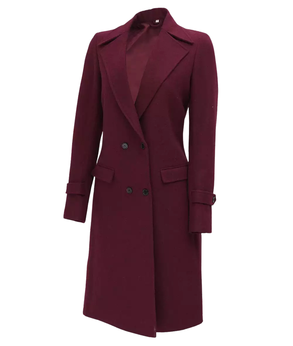 Presenting the Women’s Double Breasted Burgundy Wool Coat, an epitome of style and winter warmth. Designed with a luxurious double-breasted front, this long woolen trenchcoat is more than a garment; it’s a statement. Crafted from the finest wool, it ensures comfort and elegance, making it a perfect addition to your winter wardrobe.